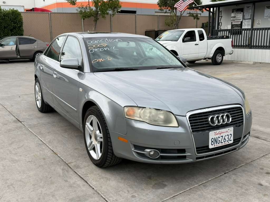 MAKE: AUDI || MODEL: A4 || YEAR: 2007 || TITLE: T-DONATION || VIN: WAUAF78E67A094401 || MILES: 186843 || ENGINE: 4 CYL / 2.0 L || COLOR: SILVER || KEYS: Yes || *Green Light