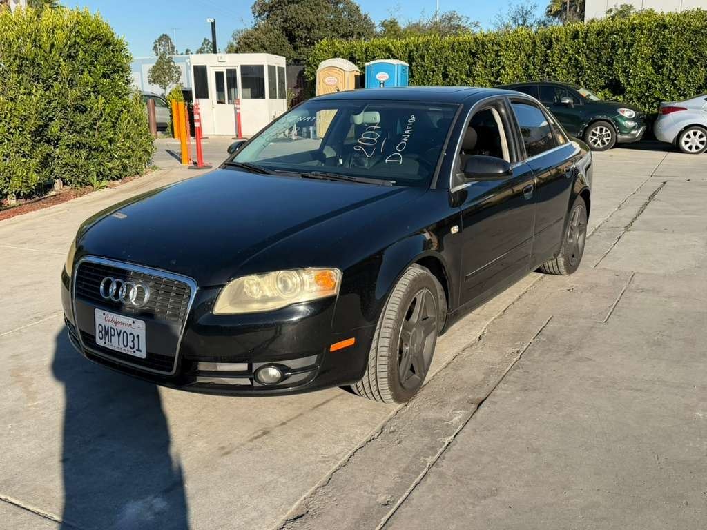 MAKE: AUDI || MODEL: A4 || YEAR: 2007 || TITLE: T-DONATION || VIN: WAUAF78E87A014449 || MILES: 164555 || ENGINE: 4 CYL / 2.0 L || COLOR: BLACK || KEYS: Yes