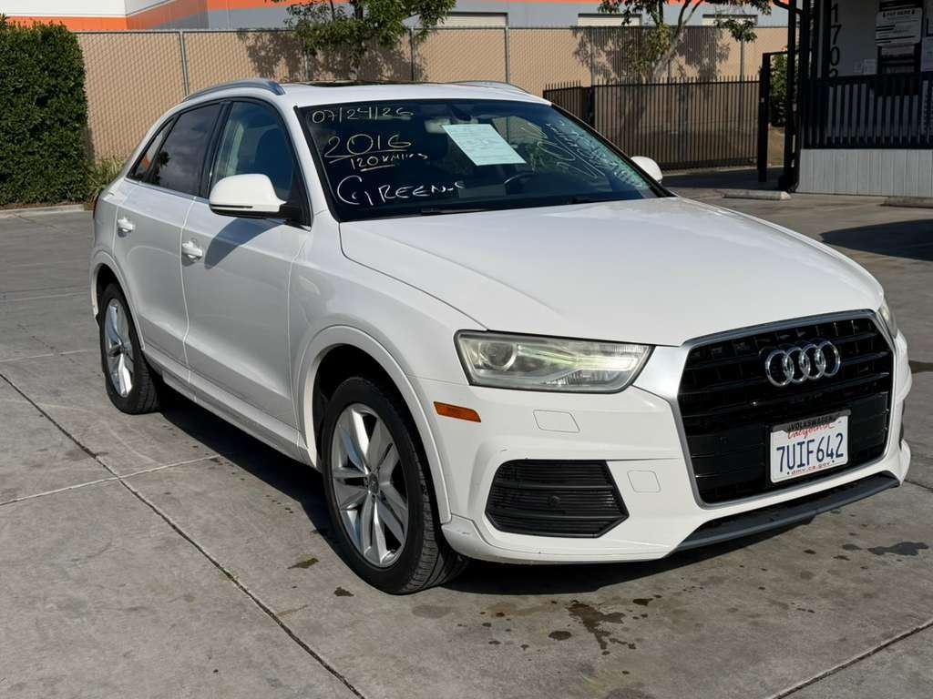 MAKE: AUDI || MODEL: Q3 || YEAR: 2016 || TITLE: T-REPO-SMOG-2 DAYS || VIN: WA1BFCFSXGR003098 || MILES: 122400 || ENGINE: 4 CYL / 2.0 L || COLOR: WHITE || KEYS: Yes || *Green Light