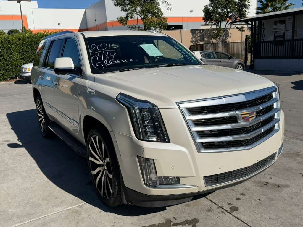 MAKE: CADI || MODEL: ESCALADE || YEAR: 2015 || TITLE: T-REPO-SMOG-2 DAYS || VIN: 1GYS4MKJ4FR603090 || MILES: 216671 || ENGINE: 8 CYL / 6.2 L || COLOR: WHITE || KEYS: Yes || *Green Light