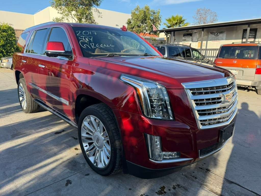 MAKE: CADI || MODEL: ESCALADE || YEAR: 2017 || TITLE: O/S TITLE 2 DAYS || VIN: 1GYS4DKJ4HR299035 || MILES: 195390 || ENGINE: 8 CYL / 6.2 L || COLOR: BURGANDY || KEYS: Yes || *Green Light