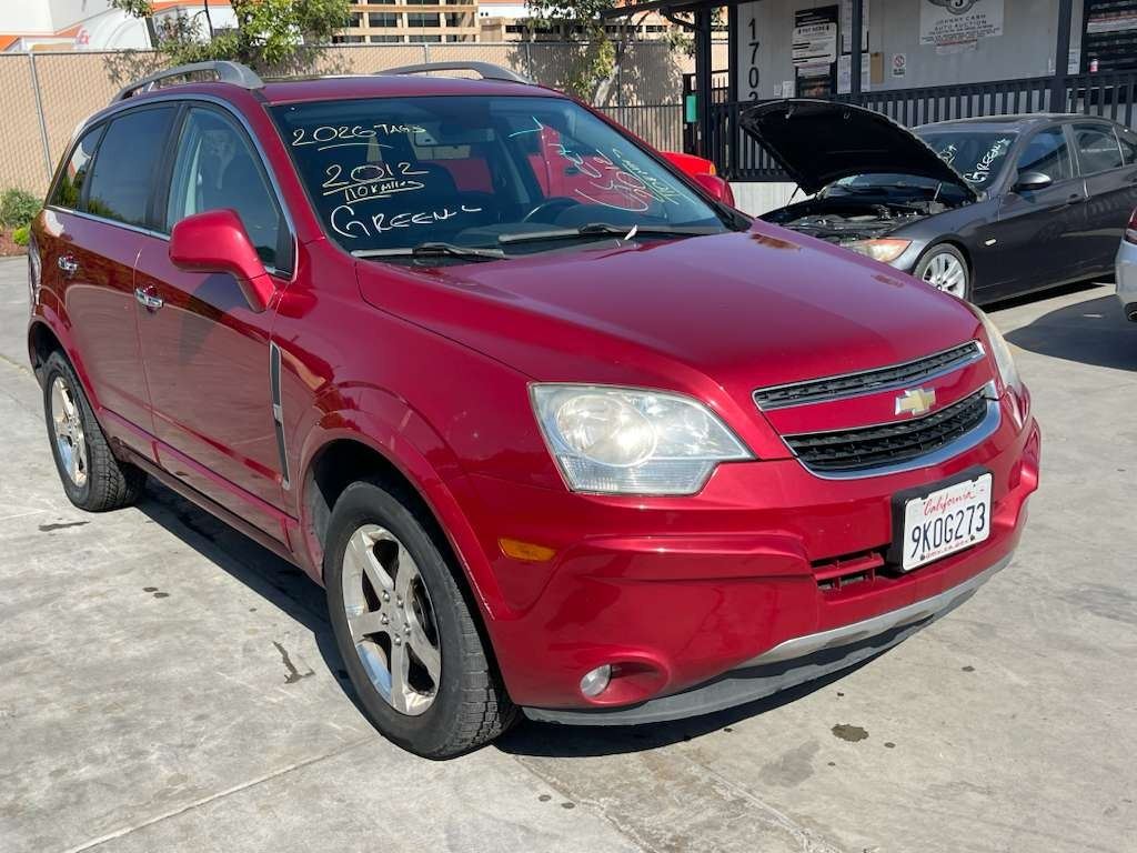 MAKE: CHEV || MODEL: CAPTIVA || YEAR: 2012 || TITLE: O/S TITLE 2 DAYS || VIN: 3GNFL4E5XCS612708 || MILES: 110615 || ENGINE: 6 CYL / 3.0 L || COLOR: RED || KEYS: Yes || *Green Light