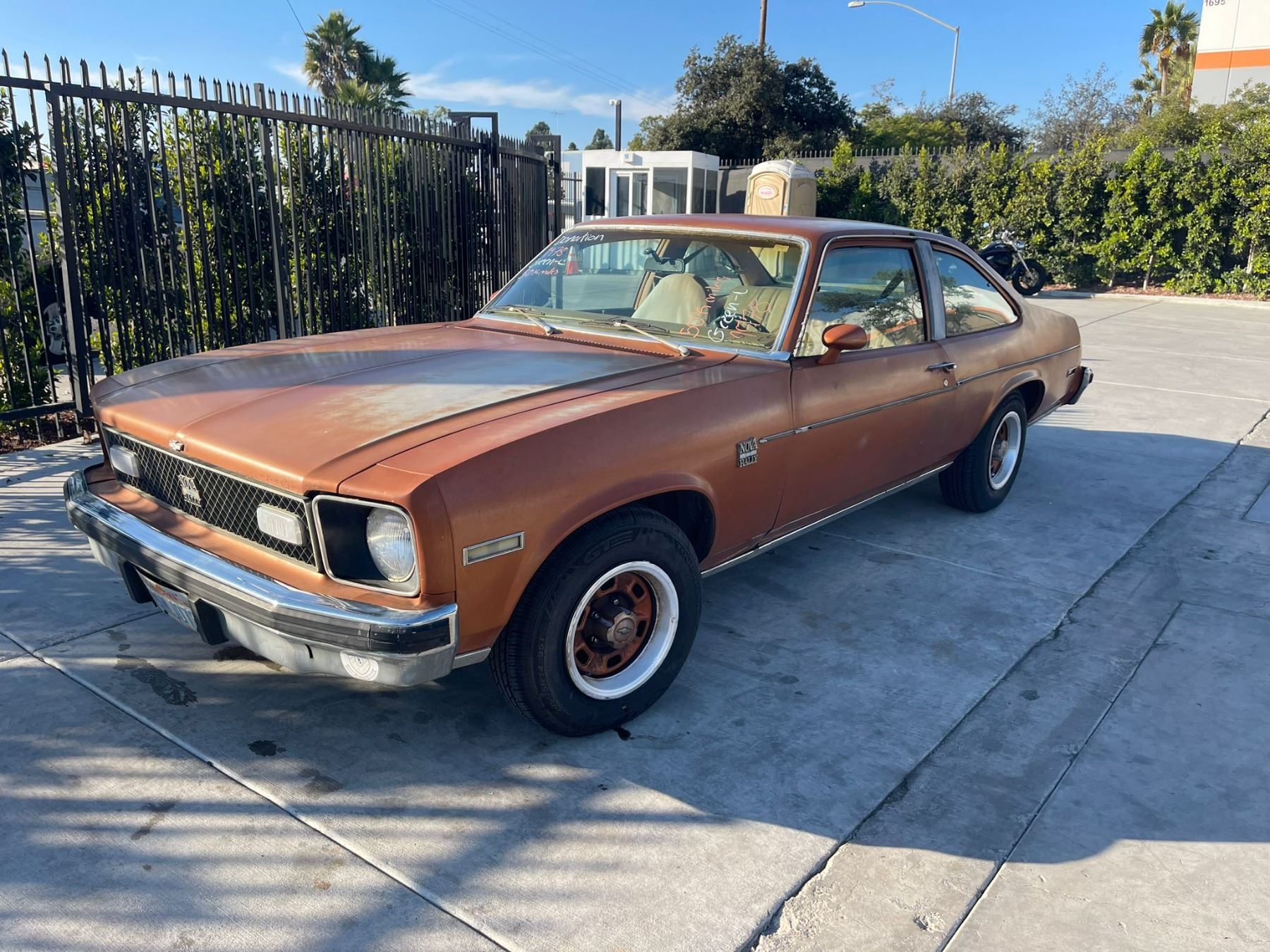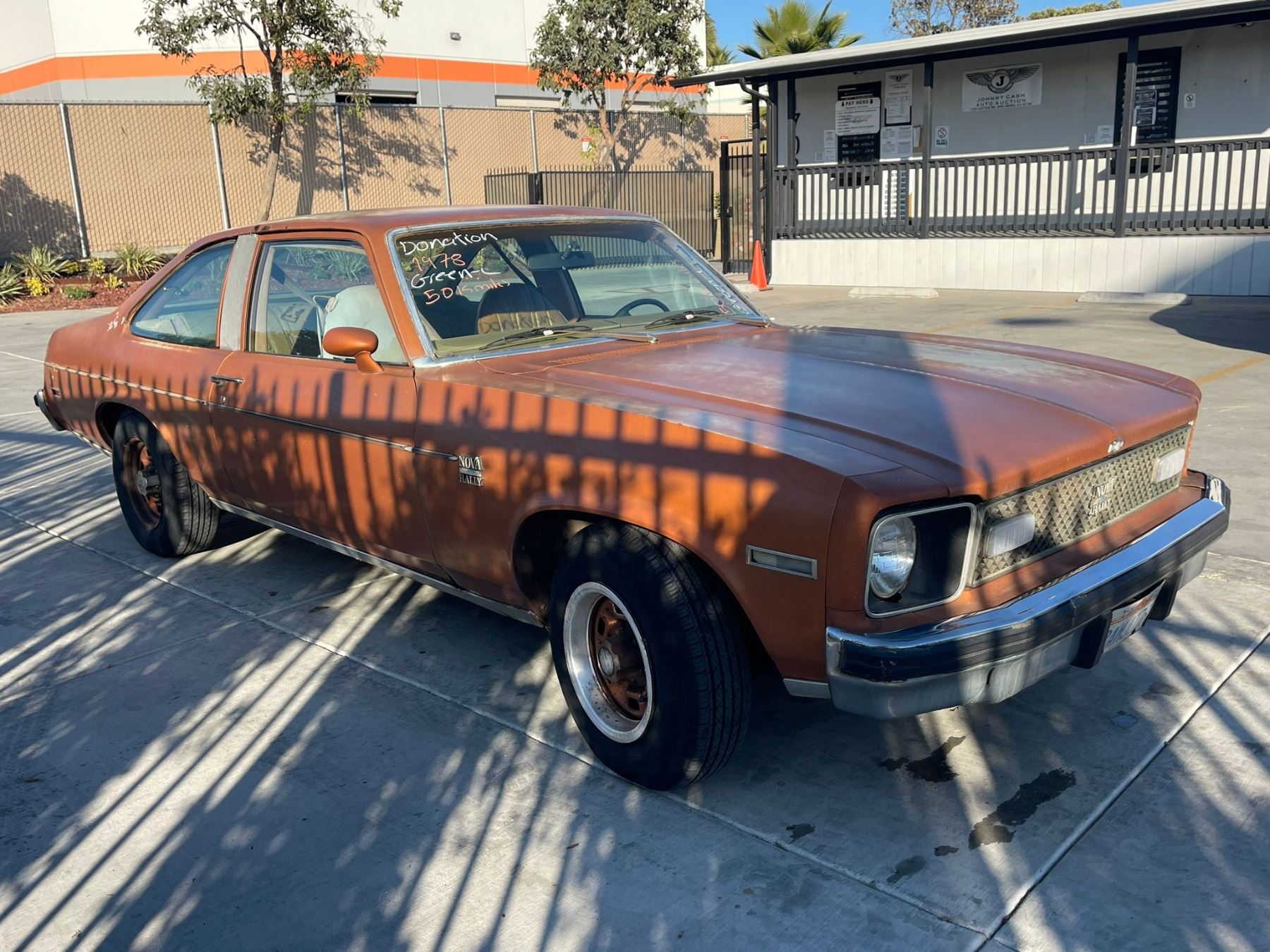 MAKE: CHEV || MODEL: NOVA || YEAR: 1978 || TITLE: SALV T/DONATION || VIN: 1Y27U8W120146 || MILES: 050297 || ENGINE: 8CYL/5.7L || COLOR: ORANGE || KEYS: Yes || *Green Light
