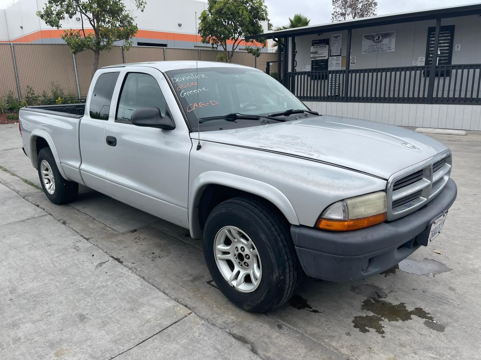 MAKE: DODG || MODEL: DAKOTA || YEAR: 2004 || TITLE: T-DONATION || VIN: 1D7GL12K14S589960 || MILES: 201057 || ENGINE: 6 CYL / 3.7 L || COLOR: SILVER || KEYS: Yes || *Green Light