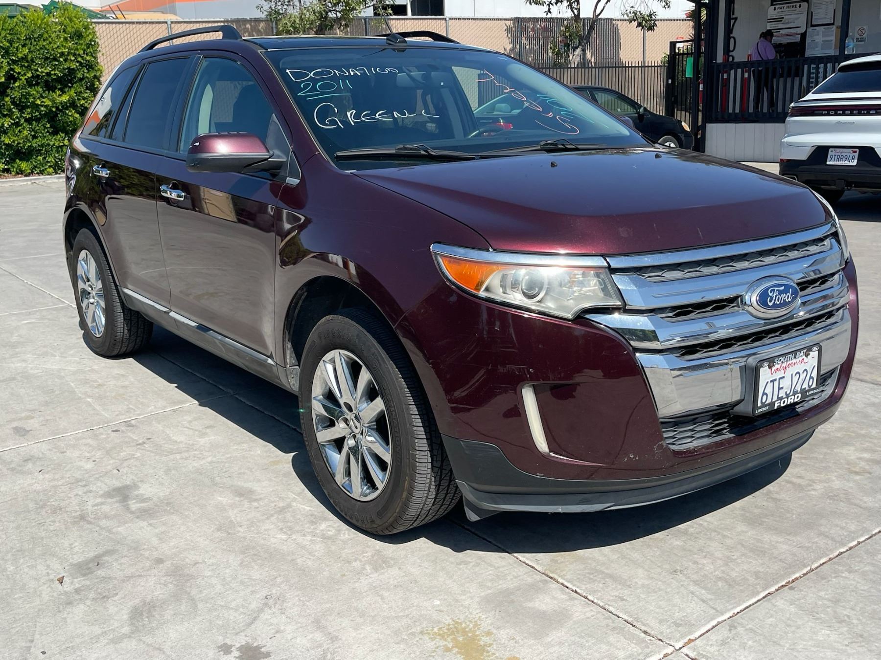 MAKE: FORD || MODEL: EDGE || YEAR: 2011 || TITLE: T-DONATION || VIN: 2FMDK3JC3BBB18336 || MILES: 159001 || ENGINE: 6 CYL / 3.5 L || COLOR: BURGANDY || KEYS: Yes || *Green Light