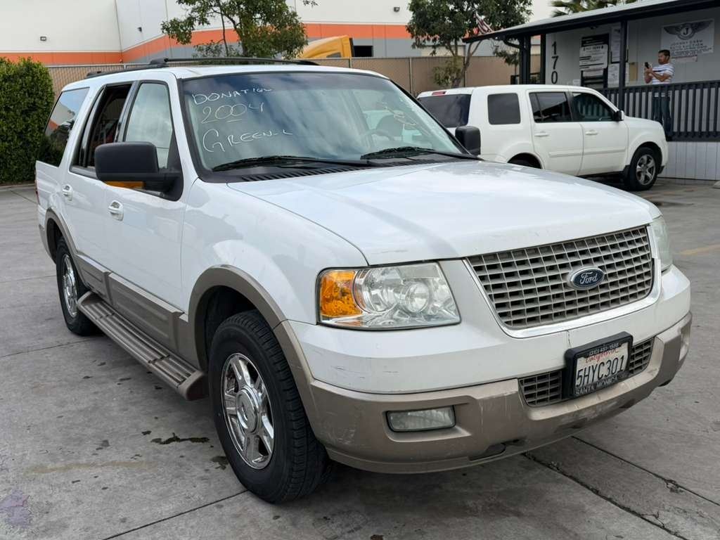 MAKE: FORD || MODEL: EXPEDITION || YEAR: 2004 || TITLE: T-DONATION || VIN: 1FMFU17L04LA44679 || MILES: 218960 || ENGINE: 8CYL/5.4L || COLOR: WHITE || KEYS: Yes || *Green Light