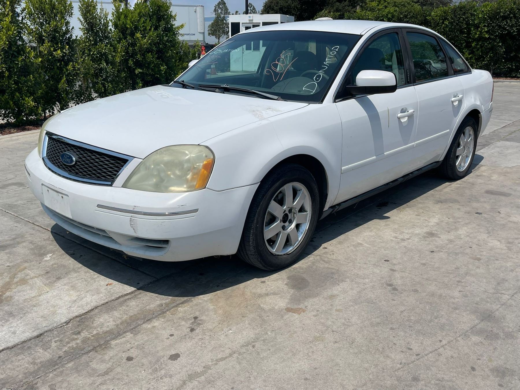 MAKE: FORD || MODEL: FIVE HUNDRED || YEAR: 2005 || TITLE: T-DONATION || VIN: 1FAFP23105G143749 || MILES: 171070 || ENGINE: 6 CYL / 3.0 L || COLOR: WHITE || KEYS: Yes
