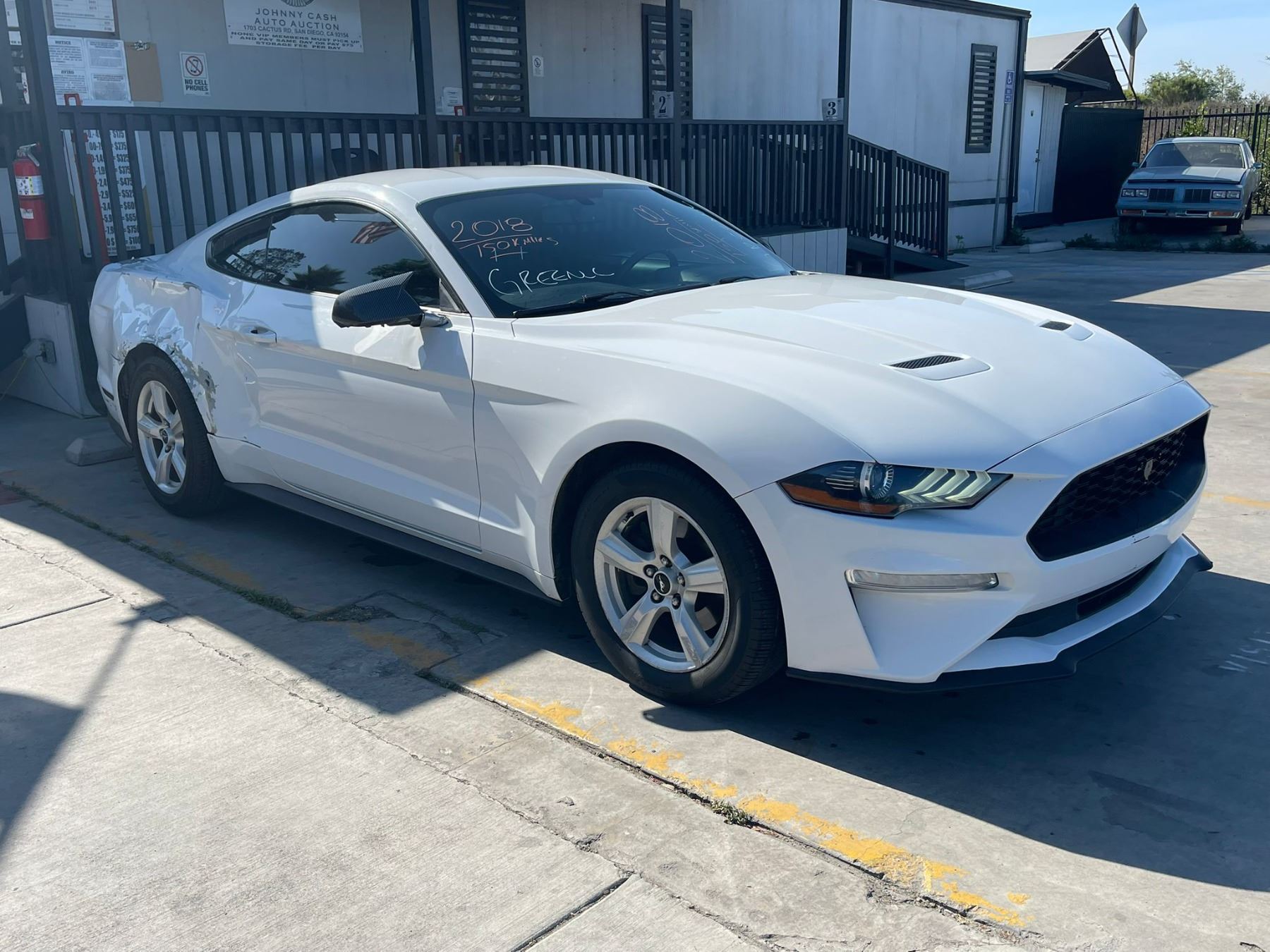 MAKE: FORD || MODEL: MUSTANG || YEAR: 2018 || TITLE: T-REPO 2 DAYS || VIN: 1FA6P8TH7J5163972 || MILES: 150468 || ENGINE: 4 CYL / 2.3 L || COLOR: WHITE || KEYS: Yes || *Green Light