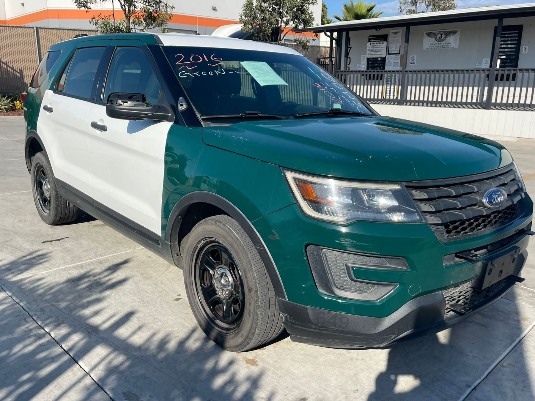 MAKE: FORD || MODEL: POLICE INTERCEPTOR || YEAR: 2016 || TITLE: T-SMOG -2 DAYS || VIN: 1FM5K8AR6GGB89598 || MILES: 204694 || ENGINE: 6 CYL / 3.7 L || COLOR: WHITE/GREEN || KEYS: Yes || *Green Light