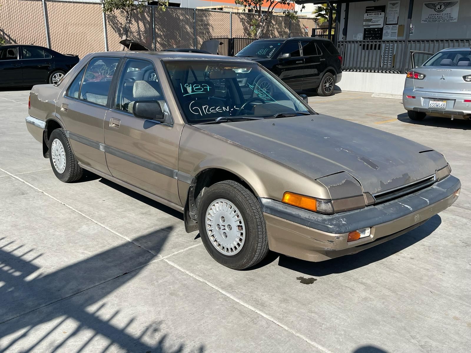 MAKE: HOND || MODEL: ACCORD || YEAR: 1987 || TITLE: SALV/T || VIN: JHMCA5630HC045361 || MILES: 195637 || ENGINE: 4 CYL / 2.0L || COLOR: GOLD || KEYS: Yes || *Green Light