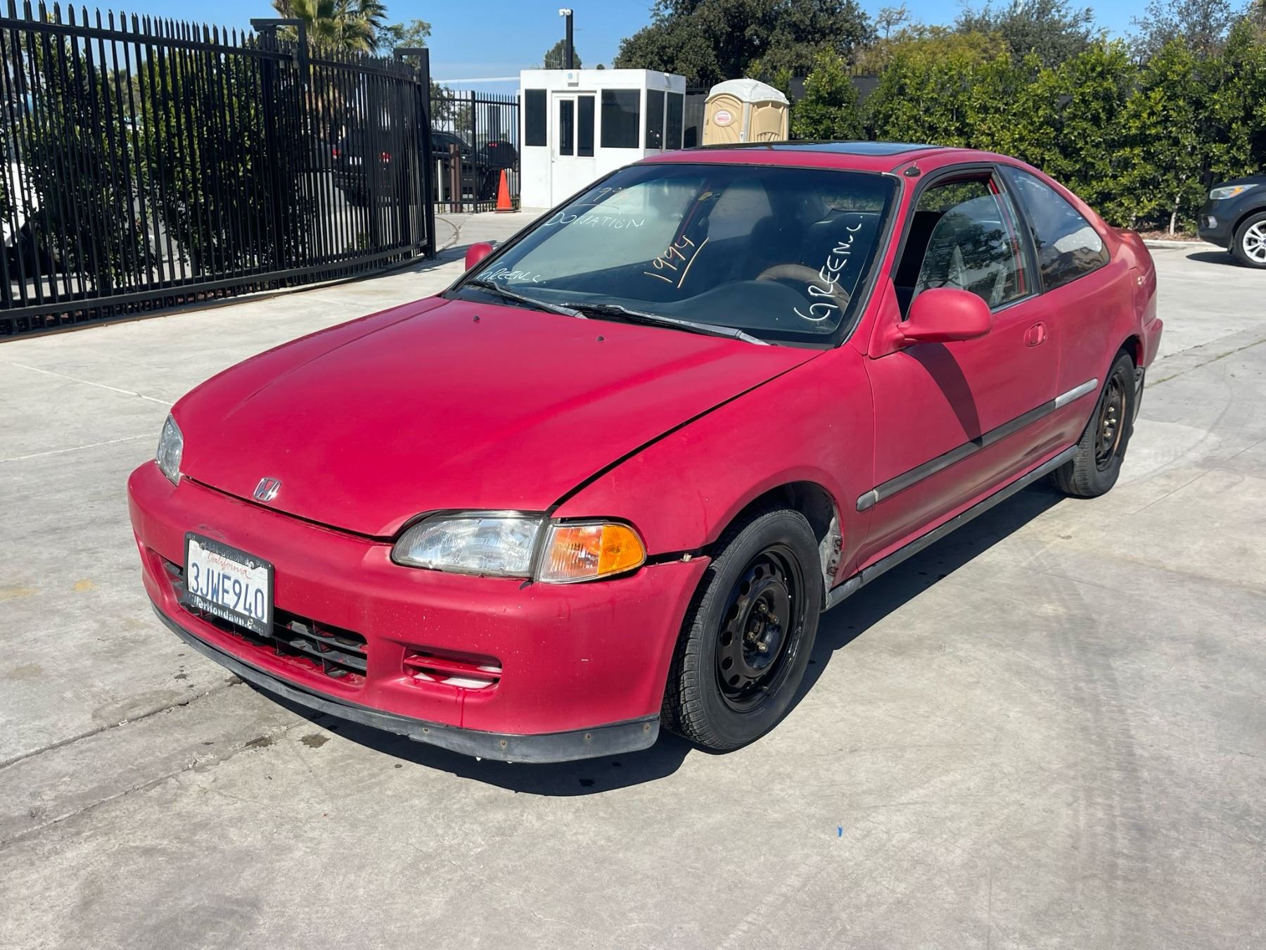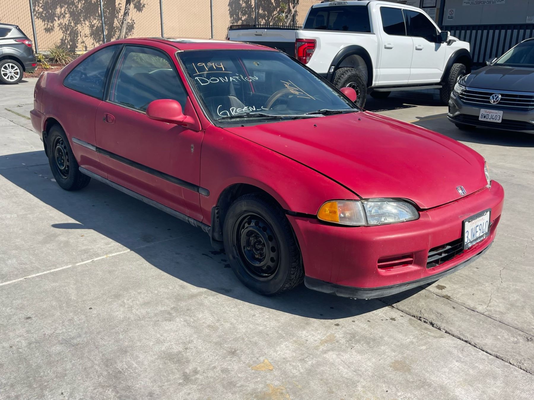 MAKE: HOND || MODEL: CIVIC || YEAR: 1994 || TITLE: APP DUP/T-DON || VIN: 2HGEJ1228RH558132 || MILES: 194334 || ENGINE: 4 CYL / 1.6L || COLOR: RED || KEYS: Yes || *Green Light