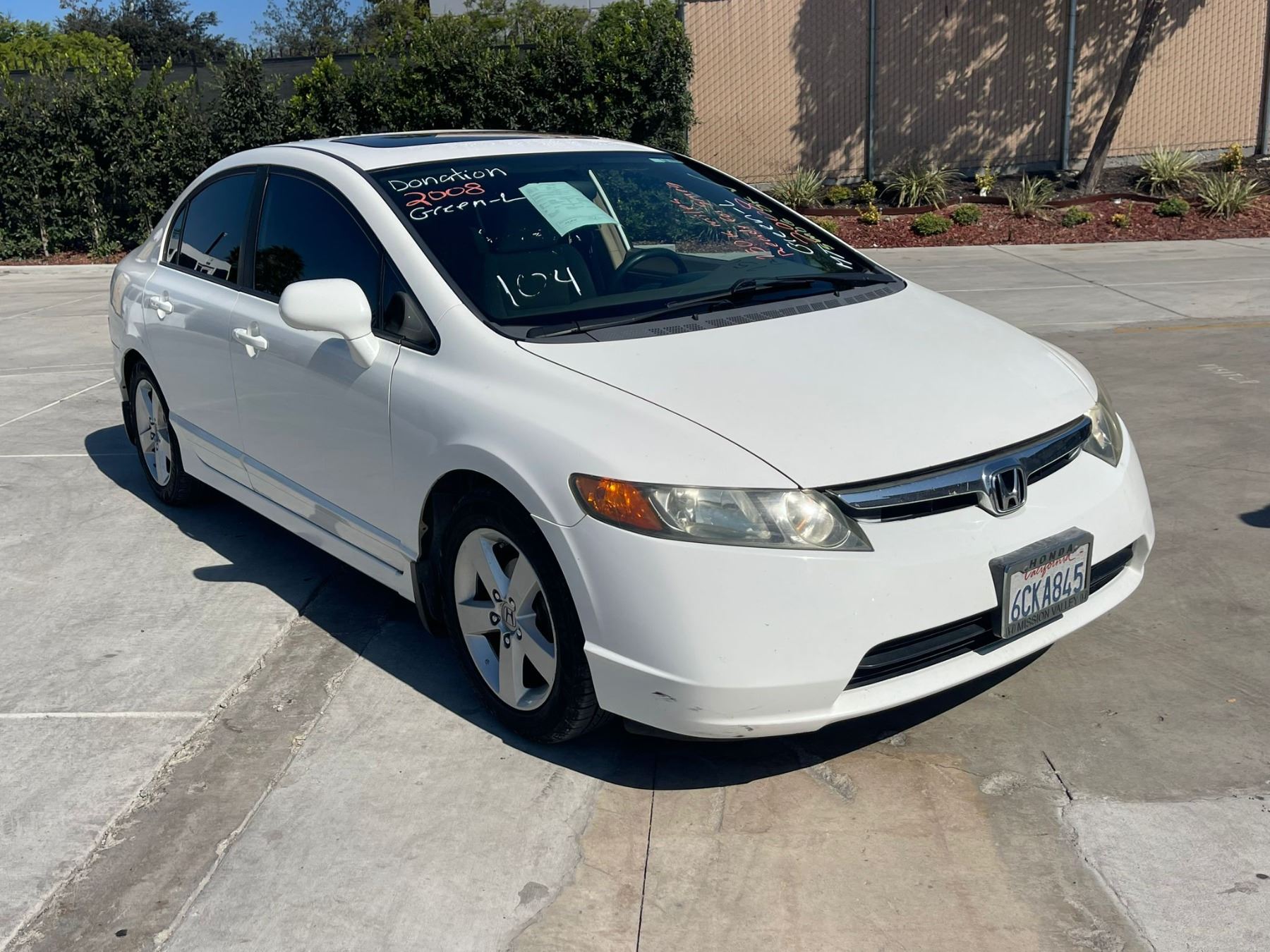 MAKE: HOND || MODEL: CIVIC || YEAR: 2008 || TITLE: T-DONATION || VIN: 1HGFA168X8L028670 || MILES: 151656 || ENGINE: 4 CYL / 1.8L || COLOR: WHITE || KEYS: Yes || *Green Light