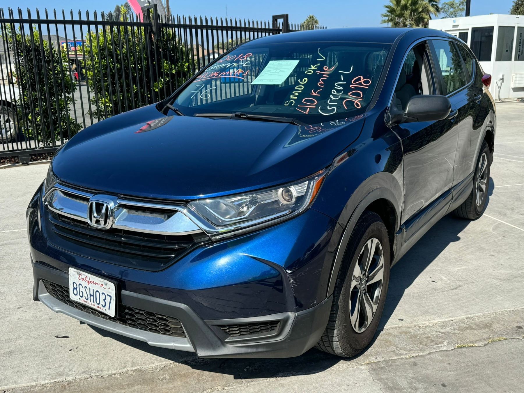 MAKE: HOND || MODEL: CR-V || YEAR: 2018 || TITLE: T- SMOG 2 DAYS || VIN: 2HKRW5H38JH421101 || MILES: 041364 || ENGINE: 4 CYL / 2.4L || COLOR: BLUE || KEYS: Yes || *Green Light