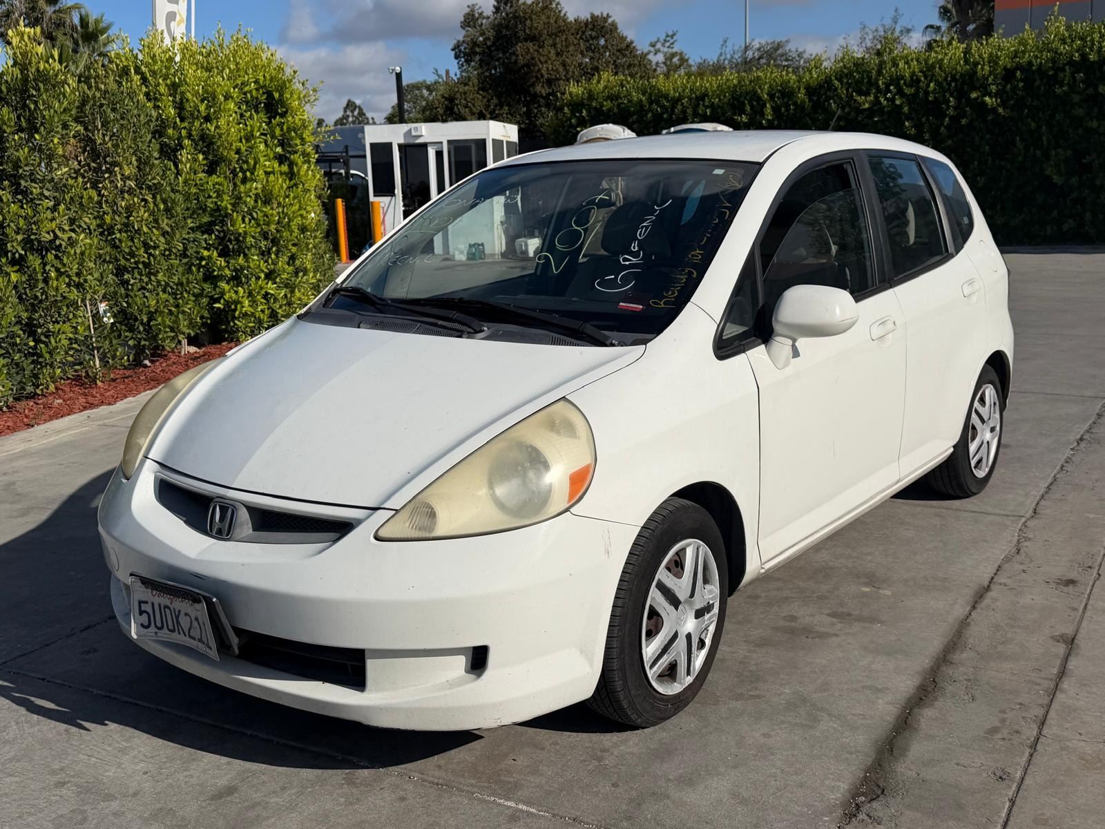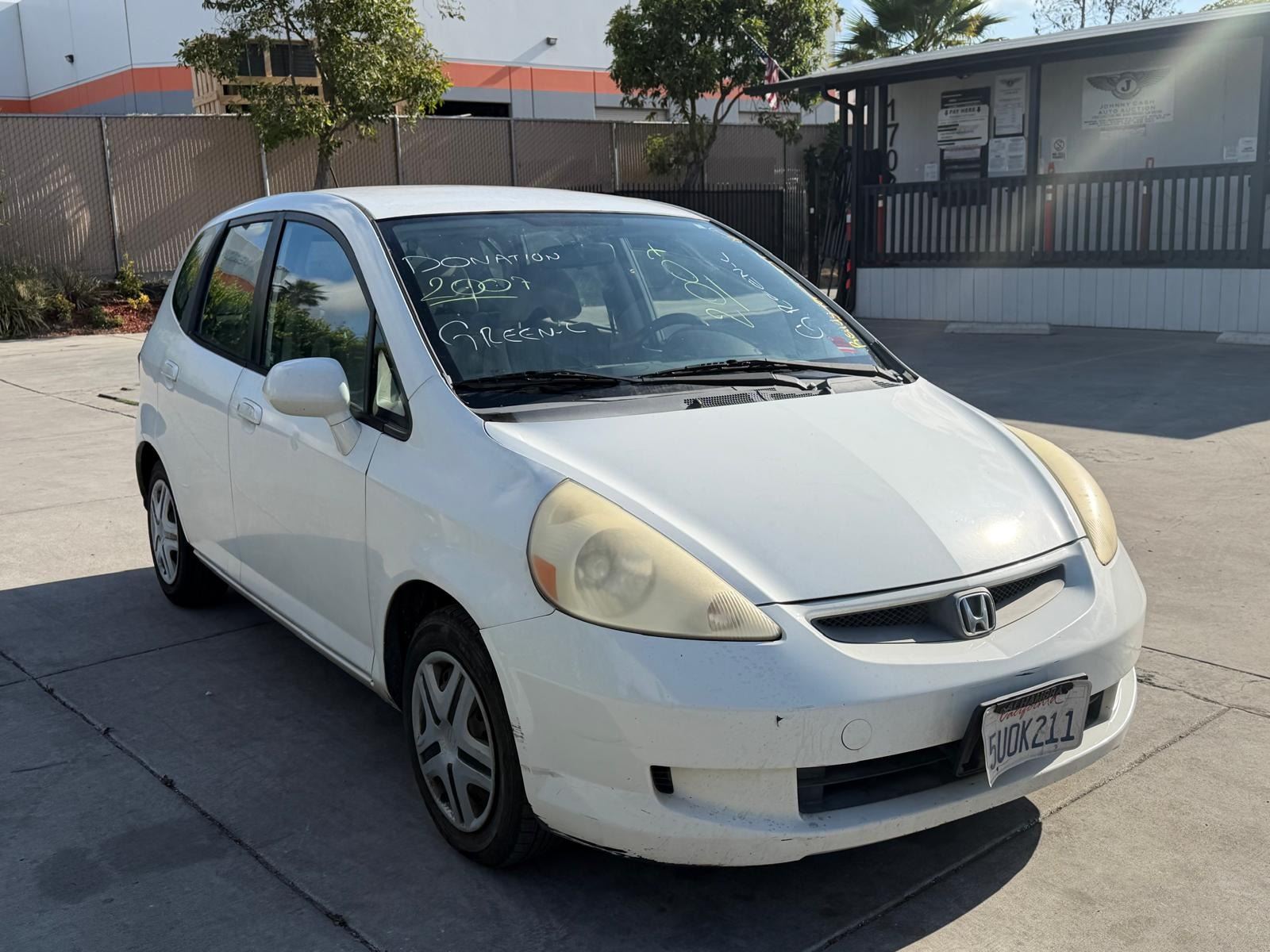 MAKE: HOND || MODEL: FIT || YEAR: 2007 || TITLE: T-DONATION || VIN: JHMGD384X7S009894 || MILES: 239856 || ENGINE: 4 CYL / 1.5 L || COLOR: WHITE || KEYS: Yes || *Green Light