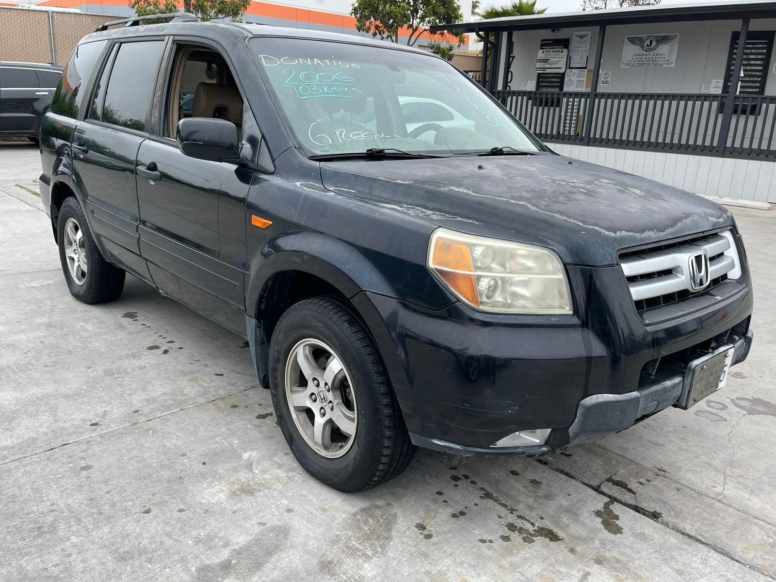 MAKE: HOND || MODEL: PILOT || YEAR: 2006 || TITLE: T-DONATION || VIN: 5FNYF28516B025528 || MILES: 103214 || ENGINE: 6 CYL / 3.5 L || COLOR: BLACK || KEYS: Yes || *Green Light