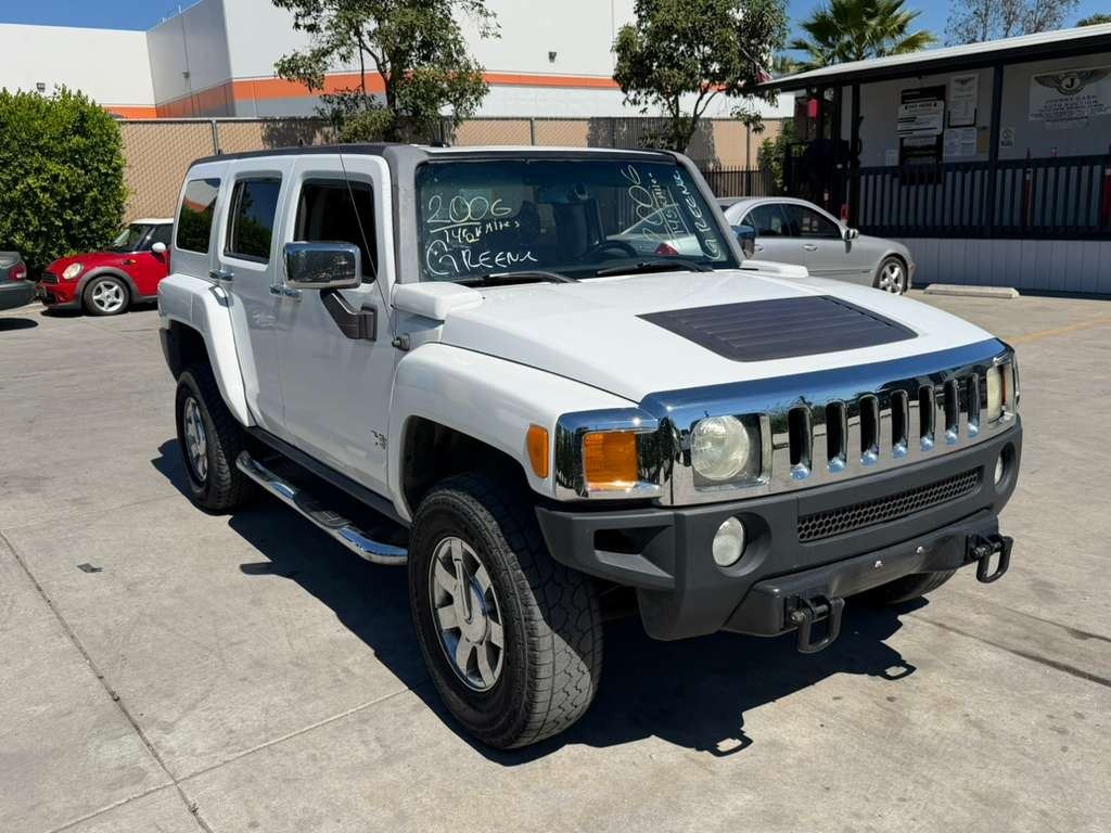 MAKE: HUMM || MODEL: H3 || YEAR: 2006 || TITLE: O/S TITLE 2 DAYS || VIN: 5GTDN136868184521 || MILES: 146845 || ENGINE: 5 CYL / 3.5 L || COLOR: WHITE || KEYS: Yes || *Green Light