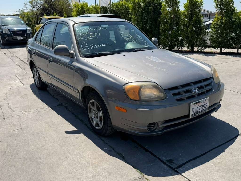 MAKE: HYUN || MODEL: ACCENT || YEAR: 2004 || TITLE: T-DONATION || VIN: KMHCG45C64U521270 || MILES: 162314 || ENGINE: 4 CYL / 1.6 L || COLOR: SILVER || KEYS: Yes || *Green Light
