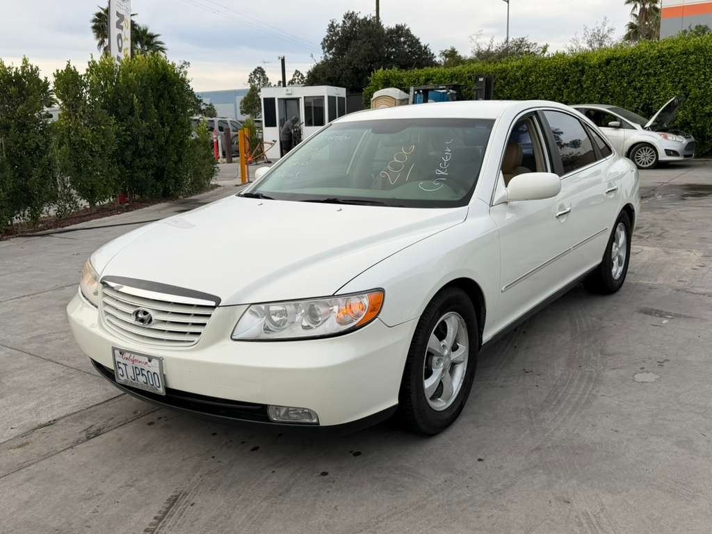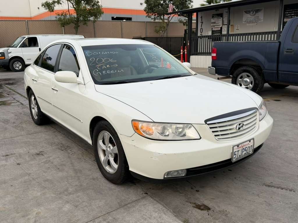 MAKE: HYUN || MODEL: AZERA || YEAR: 2006 || TITLE: T-DONATION || VIN: KMHFC46F46A073214 || MILES: 130844 || ENGINE: 6 CYL / 3.8 L || COLOR: WHITE || KEYS: Yes || *Green Light