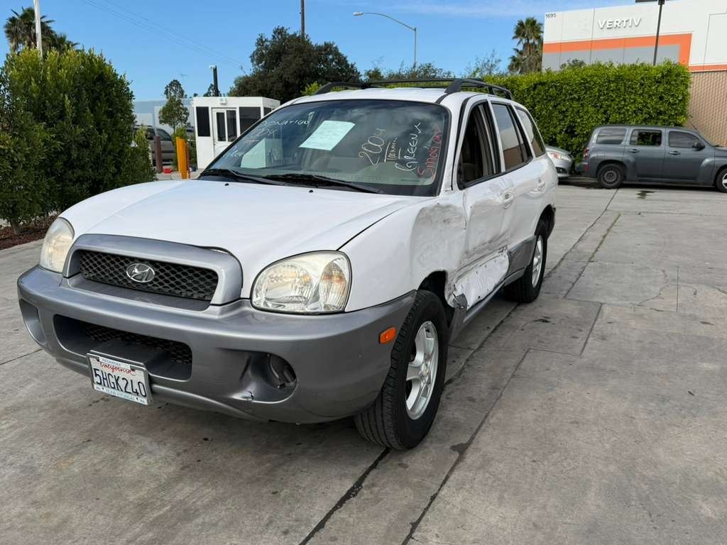 MAKE: HYUN || MODEL: SANTA FE || YEAR: 2004 || TITLE: T-DON - SMOG || VIN: KM8SB12B14U668813 || MILES: 099374 || ENGINE: 4 CYL / 2.4 L || COLOR: WHITE || KEYS: Yes || *Green Light