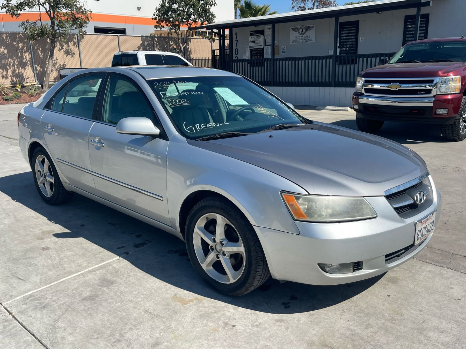 MAKE: HYUN || MODEL: SONATA || YEAR: 2008 || TITLE: SALV-T-DON SMOG || VIN: 5NPEU46C28H364308 || MILES: 221693 || ENGINE: 4 CYL / 2.4L || COLOR: SILVER || KEYS: Yes || *Green Light