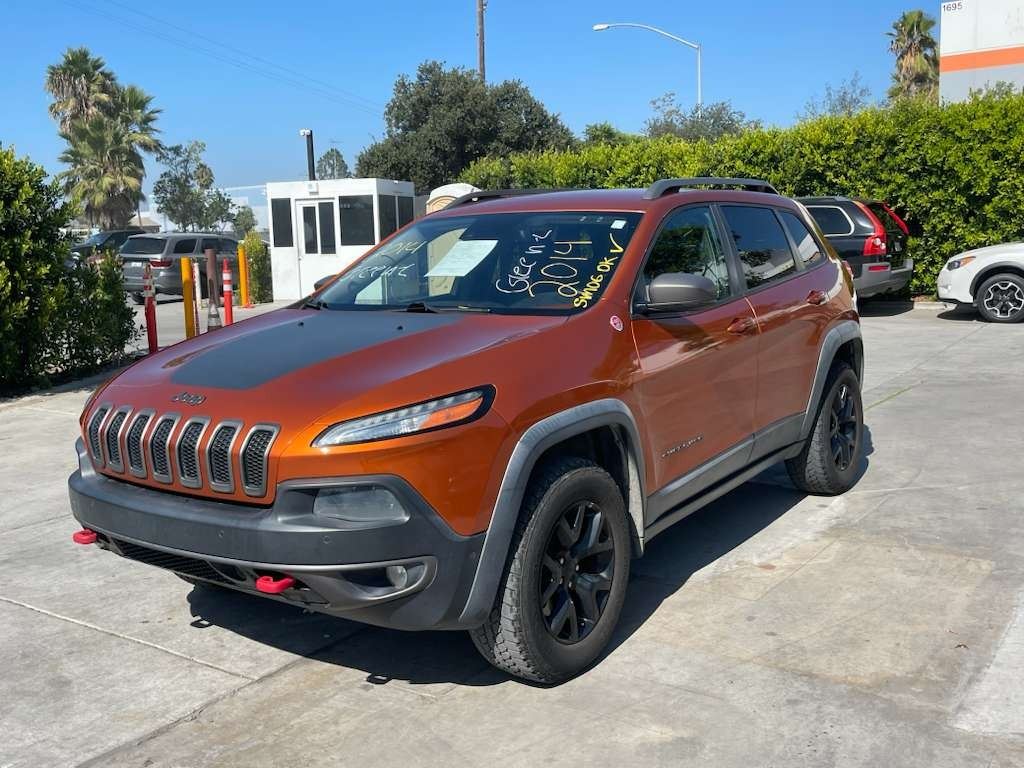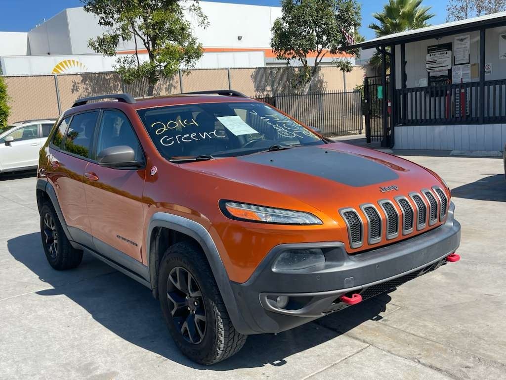 MAKE: JEEP || MODEL: CHEROKEE || YEAR: 2014 || TITLE: T-SMOG -2 DAYS || VIN: 1C4PJMBS5EW255295 || MILES: 210413 || ENGINE: 6 CYL / 3.2 L || COLOR: ORANGE || KEYS: Yes || *Green Light