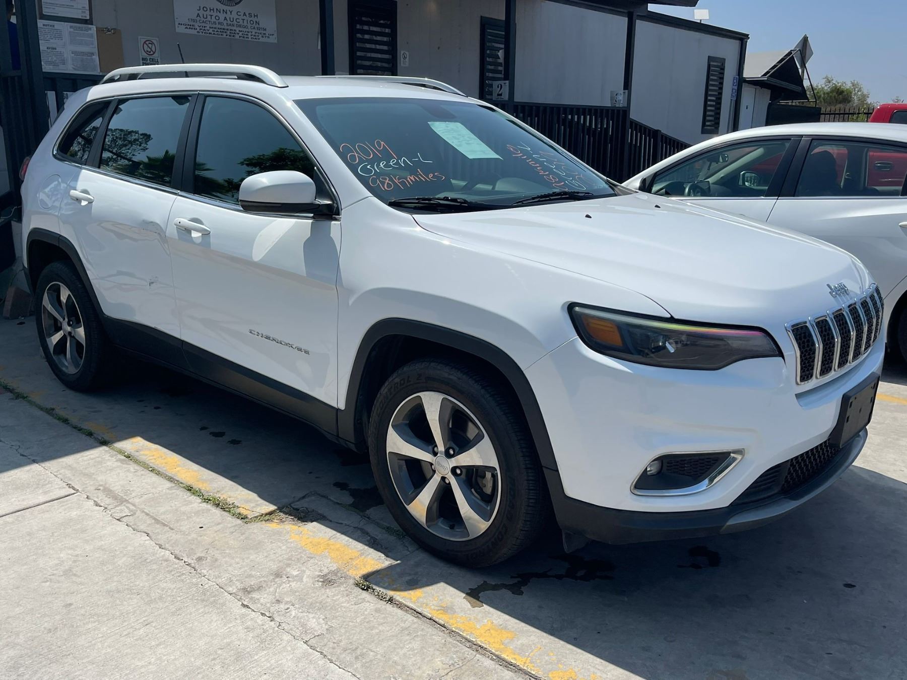 MAKE: JEEP || MODEL: CHEROKEE || YEAR: 2019 || TITLE: O/S-T SMOG-2 DAYS || VIN: 1C4PJLDB7KD419452 || MILES: 098600 || ENGINE: 4 CYL / 2.4 L || COLOR: WHITE || KEYS: Yes || *Green Light