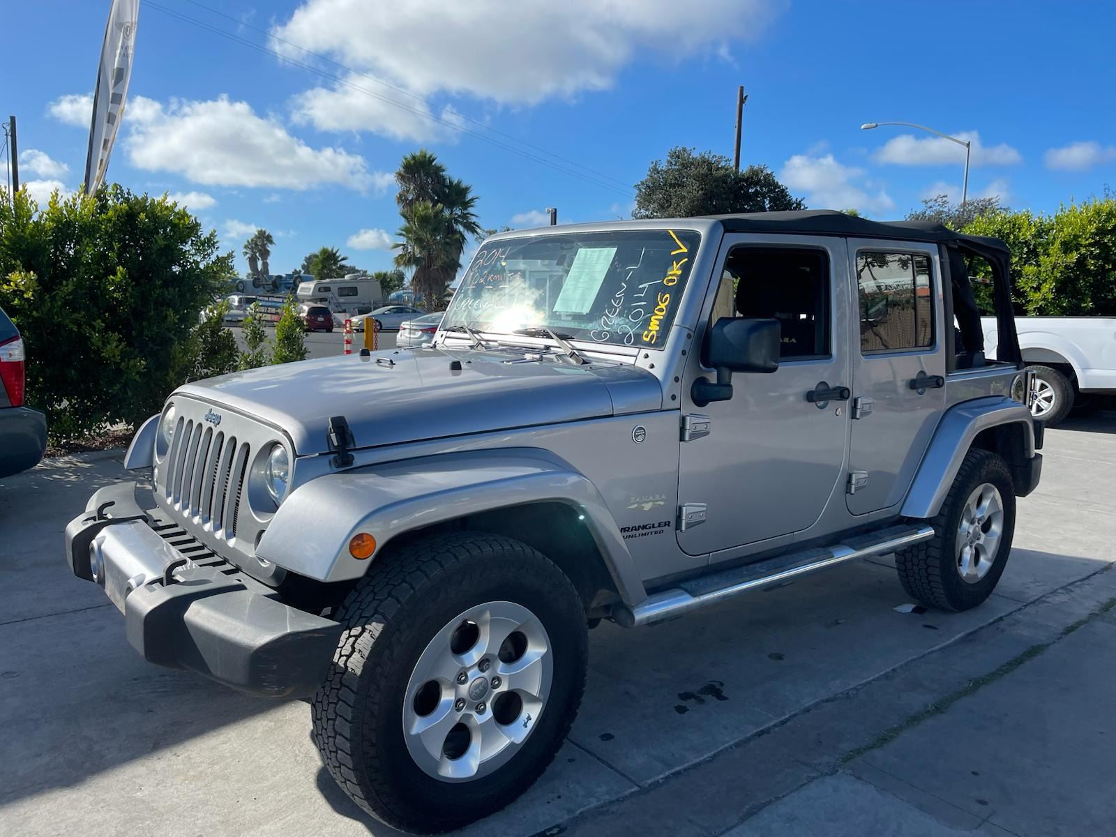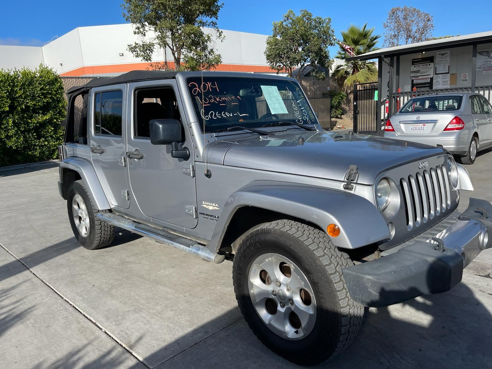MAKE: JEEP || MODEL: WRANGLER || YEAR: 2014 || TITLE: O/S-T SMOG-2 DAYS || VIN: 1C4BJWEG1EL292021 || MILES: 102754 || ENGINE: 6 CYL / 3.6 L || COLOR: SILVER || KEYS: Yes || *Green Light