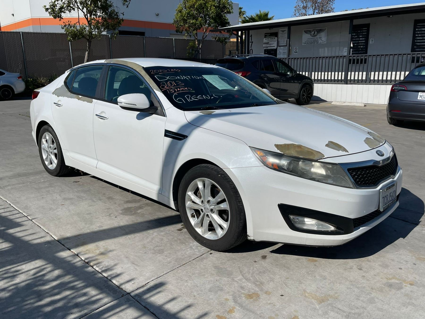 MAKE: KIA || MODEL: OPTIMA || YEAR: 2013 || TITLE: T-DON - SMOG || VIN: 5XXGN4A71DG249057 || MILES: 137784 || ENGINE: 4 CYL / 2.4 L || COLOR: WHITE || KEYS: Yes || *Green Light