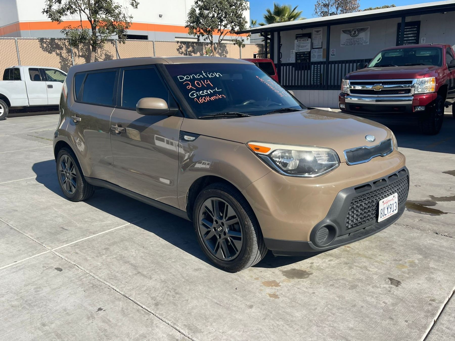 MAKE: KIA || MODEL: SOUL || YEAR: 2014 || TITLE: SALV T/DONATION || VIN: KNDJN2A24E7092388 || MILES: 160403 || ENGINE: 4 CYL / 1.6L || COLOR: BROWN || KEYS: Yes || *Green Light