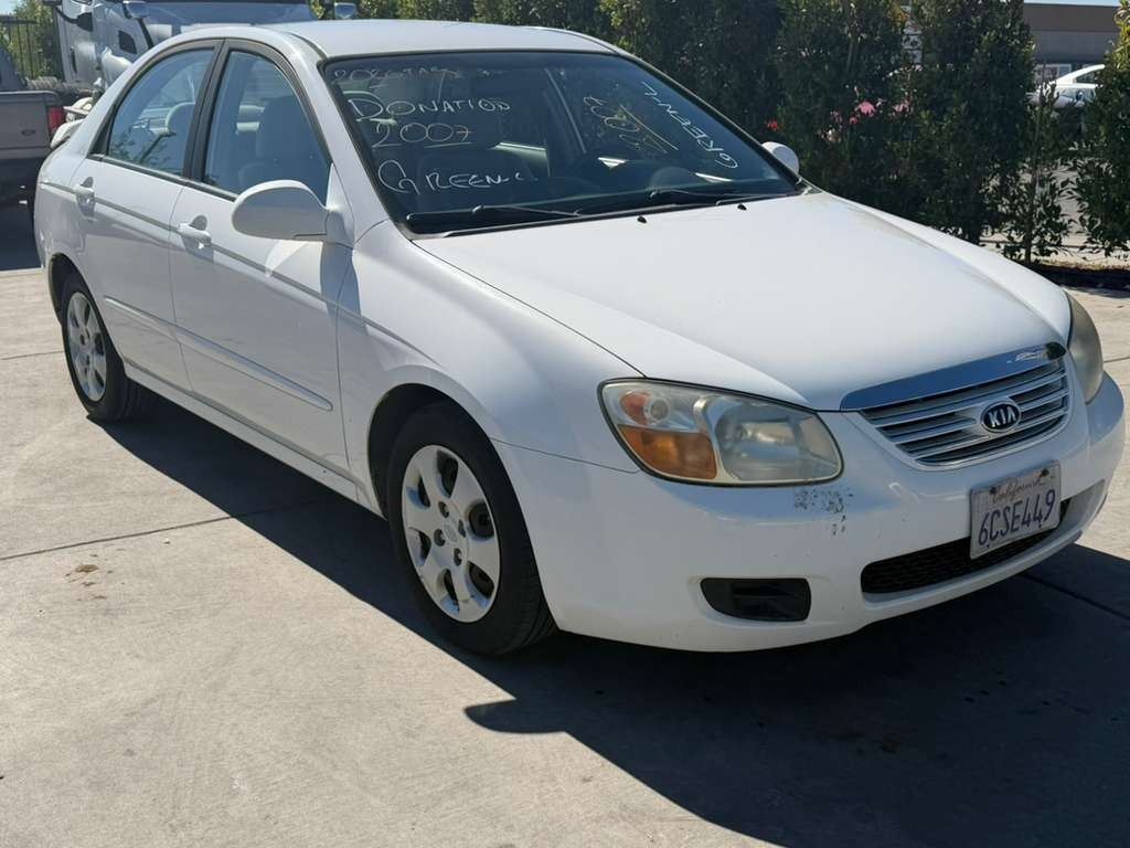 MAKE: KIA || MODEL: SPECTRA || YEAR: 2007 || TITLE: T-DONATION || VIN: KNAFE122275483498 || MILES: 176004 || ENGINE: 4 CYL / 2.0 L || COLOR: WHITE || KEYS: Yes || *Green Light