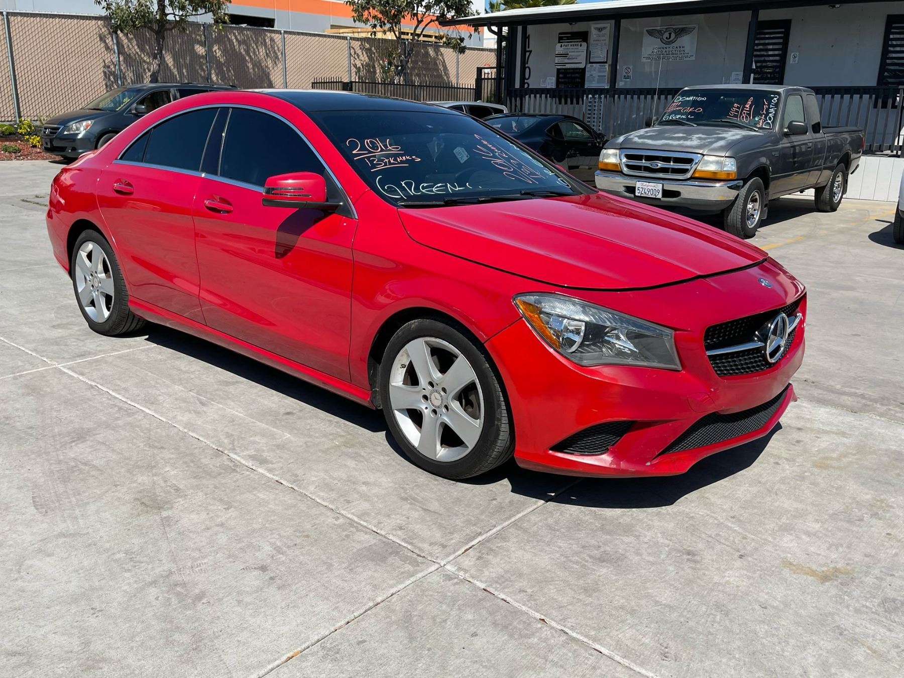 MAKE: MERZ || MODEL: CLA250 || YEAR: 2016 || TITLE: O/S- T-REPO- 2 DAYS || VIN: WDDSJ4EB2GN383465 || MILES: 137420 || ENGINE: 4 CYL / 2.0 L || COLOR: RED || KEYS: Yes || *Green Light
