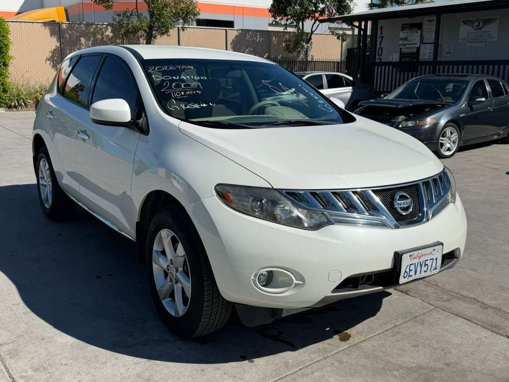 MAKE: NISS || MODEL: MURANO || YEAR: 2009 || TITLE: T-DONATION || VIN: JN8AZ18U29W009983 || MILES: 111203 || ENGINE: 6 CYL / 3.5 L || COLOR: WHITE || KEYS: Yes || *Green Light