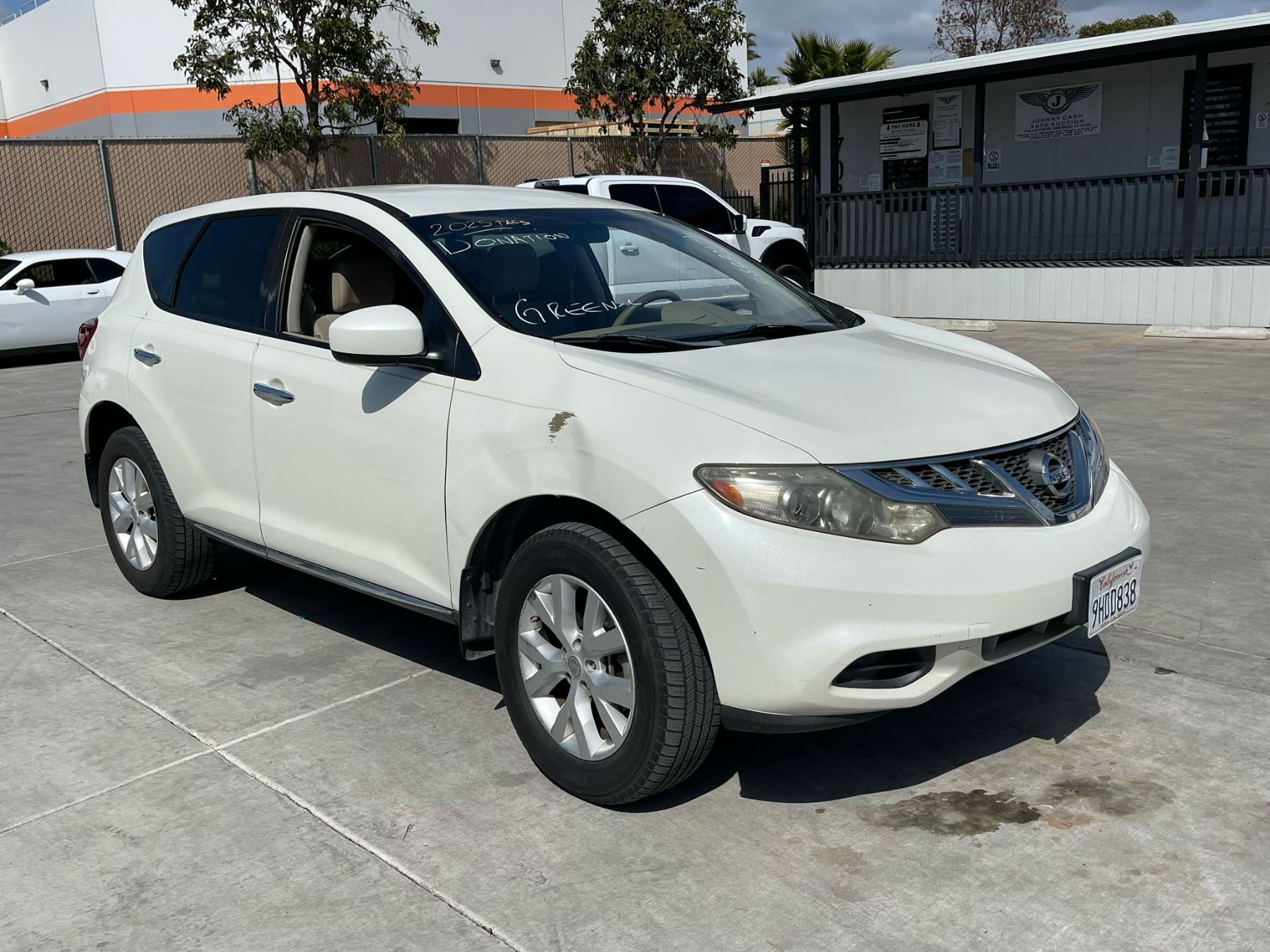 MAKE: NISS || MODEL: MURANO || YEAR: 2011 || TITLE: T-DONATION || VIN: JN8AZ1MU5BW063998 || MILES: 204400 || ENGINE: 6 CYL / 3.5 L || COLOR: WHITE || KEYS: Yes || *Green Light