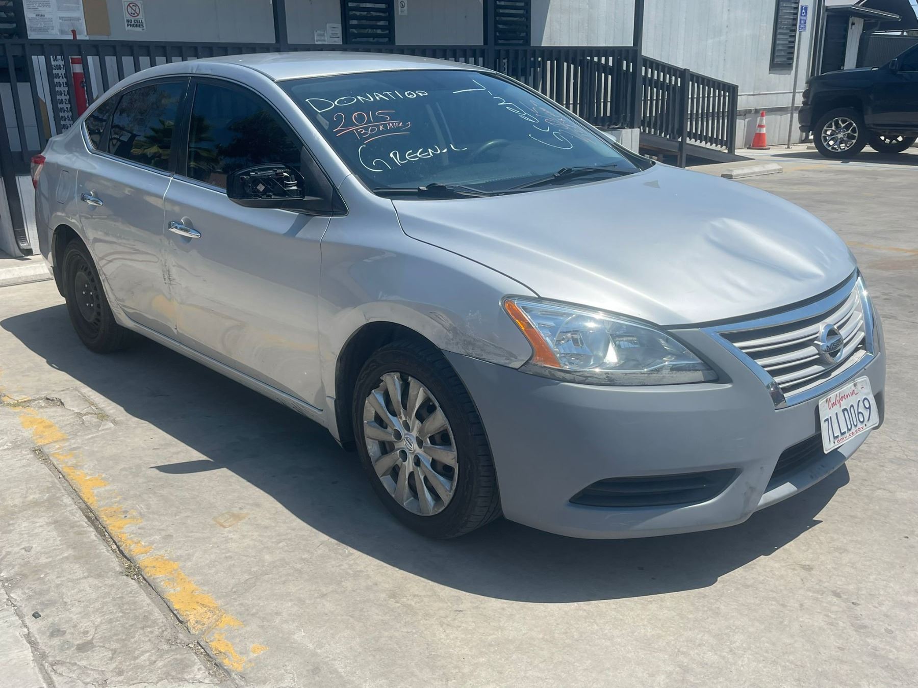 MAKE: NISS || MODEL: SENTRA || YEAR: 2015 || TITLE: T-DON-OFFICE REG || VIN: 3N1AB7AP0FY234353 || MILES: 133784 || ENGINE: 4 CYL / 1.8 L || COLOR: SILVER || KEYS: Yes || *Green Light