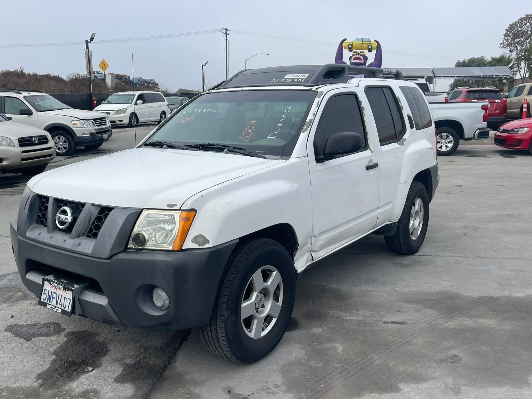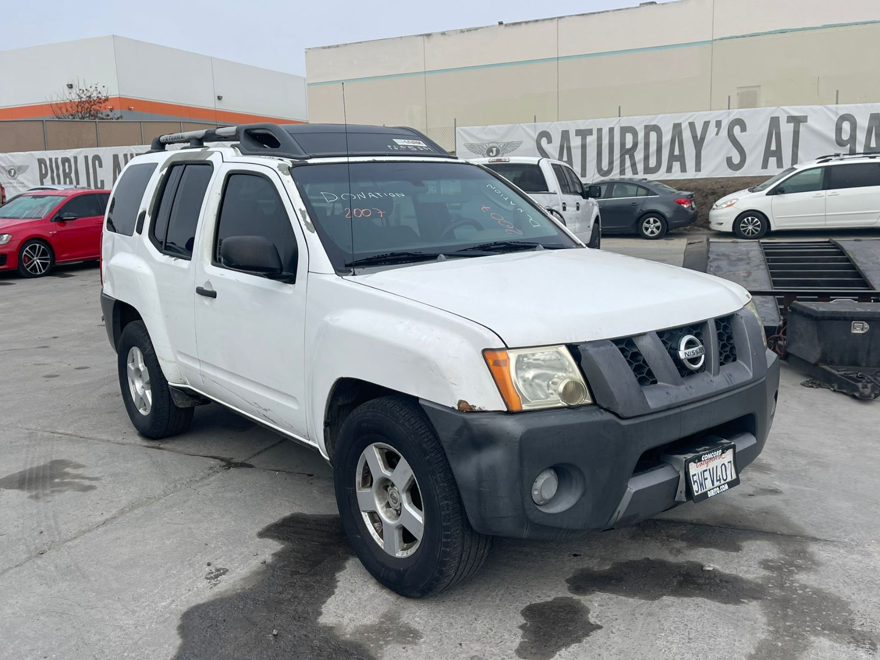MAKE: NISS || MODEL: XTERRA || YEAR: 2007 || TITLE: T-DONATION || VIN: 5N1AN08U47C501104 || MILES: 205262 || ENGINE: 6 CYL /4.0L || COLOR: WHITE || KEYS: Yes