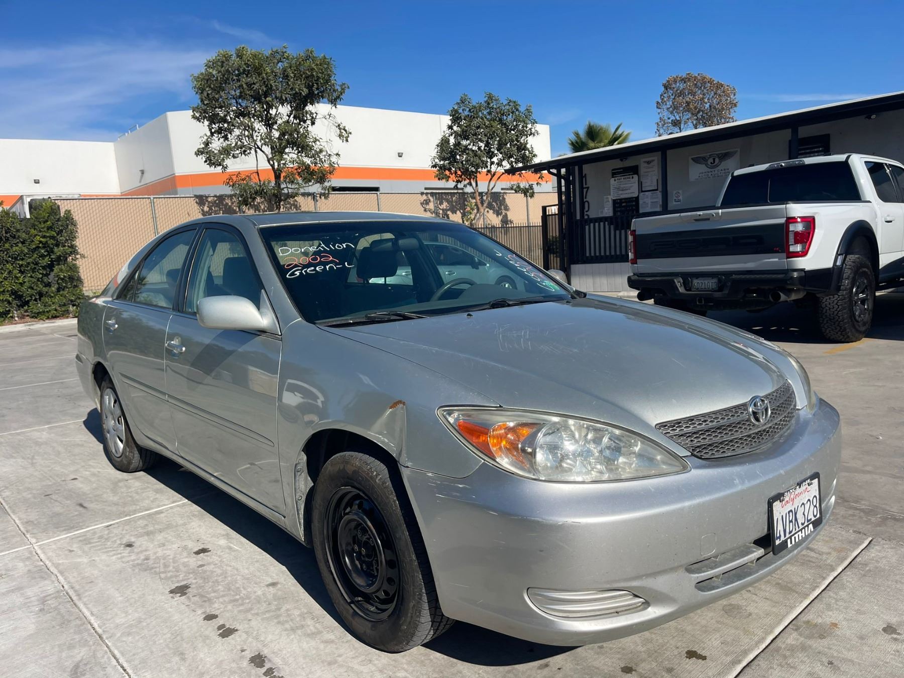MAKE: TOYT || MODEL: CAMRY || YEAR: 2002 || TITLE: T-DONATION || VIN: JTDBE32K320027240 || MILES: 235556 || ENGINE: 4 CYL / 2.4L || COLOR: SILVER || KEYS: Yes || *Green Light
