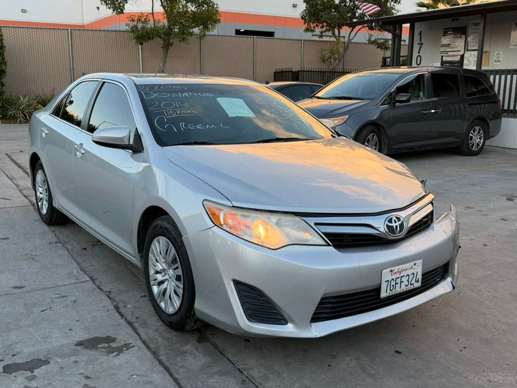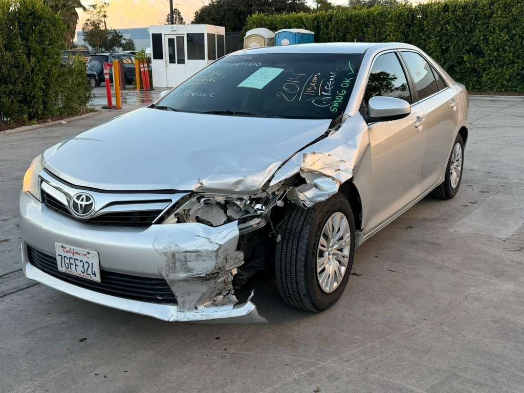 MAKE: TOYT || MODEL: CAMRY || YEAR: 2014 || TITLE: T-DON - SMOG || VIN: 4T4BF1FK7ER420880 || MILES: 117666 || ENGINE: 4 CYL / 2.5 L || COLOR: SILVER || KEYS: Yes || *Green Light