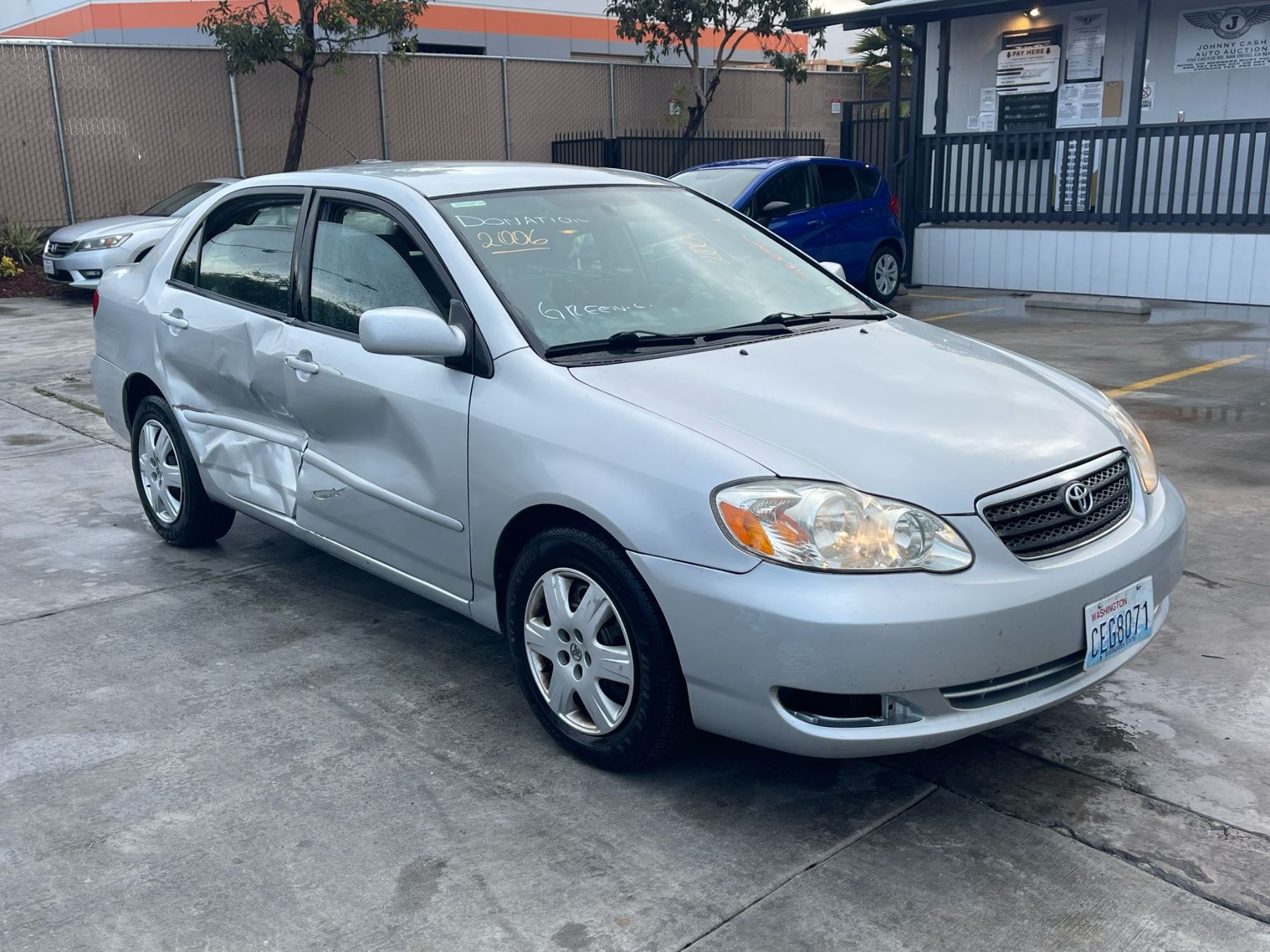 MAKE: TOYT || MODEL: COROLLA || YEAR: 2006 || TITLE: O/S T-DON || VIN: 2T1BR30E96C624583 || MILES: 172778 || ENGINE: 4 CYL / 1.8L || COLOR: SILVER || KEYS: Yes || *Green Light