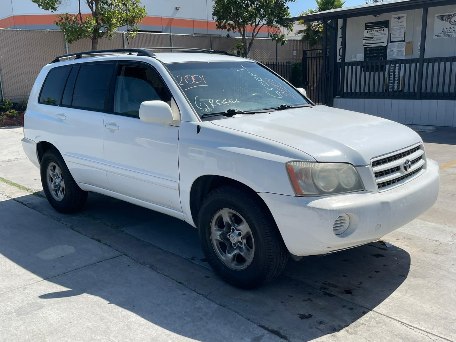MAKE: TOYT || MODEL: HIGHLANDER || YEAR: 2001 || TITLE: O/S TITLE 2 DAYS || VIN: JTEGD21A910020475 || MILES: 273186 || ENGINE: 4 CYL / 2.4 L || COLOR: WHITE || KEYS: Yes || *Green Light