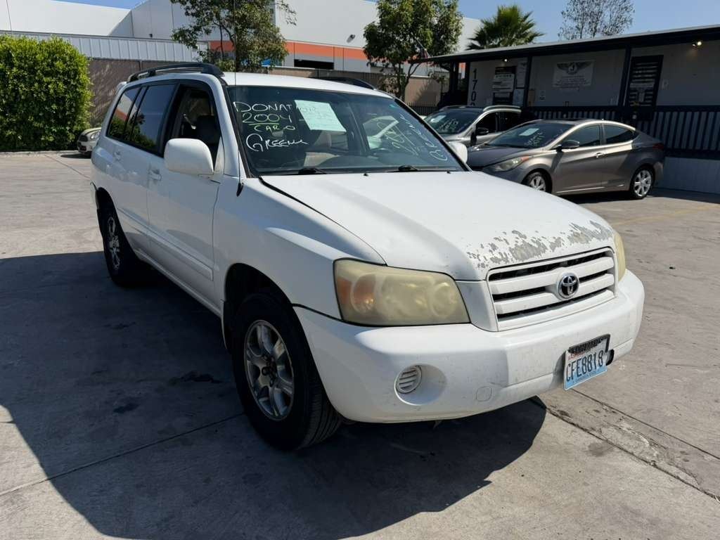 MAKE: TOYT || MODEL: HIGHLANDER || YEAR: 2004 || TITLE: APP/DUP-T/EXP-ONLY-SMOG || VIN: JTEGP21A440021349 || MILES: 188201 || ENGINE: 6 CYL / 3.3 L || COLOR: WHITE || KEYS: Yes || *Green Light