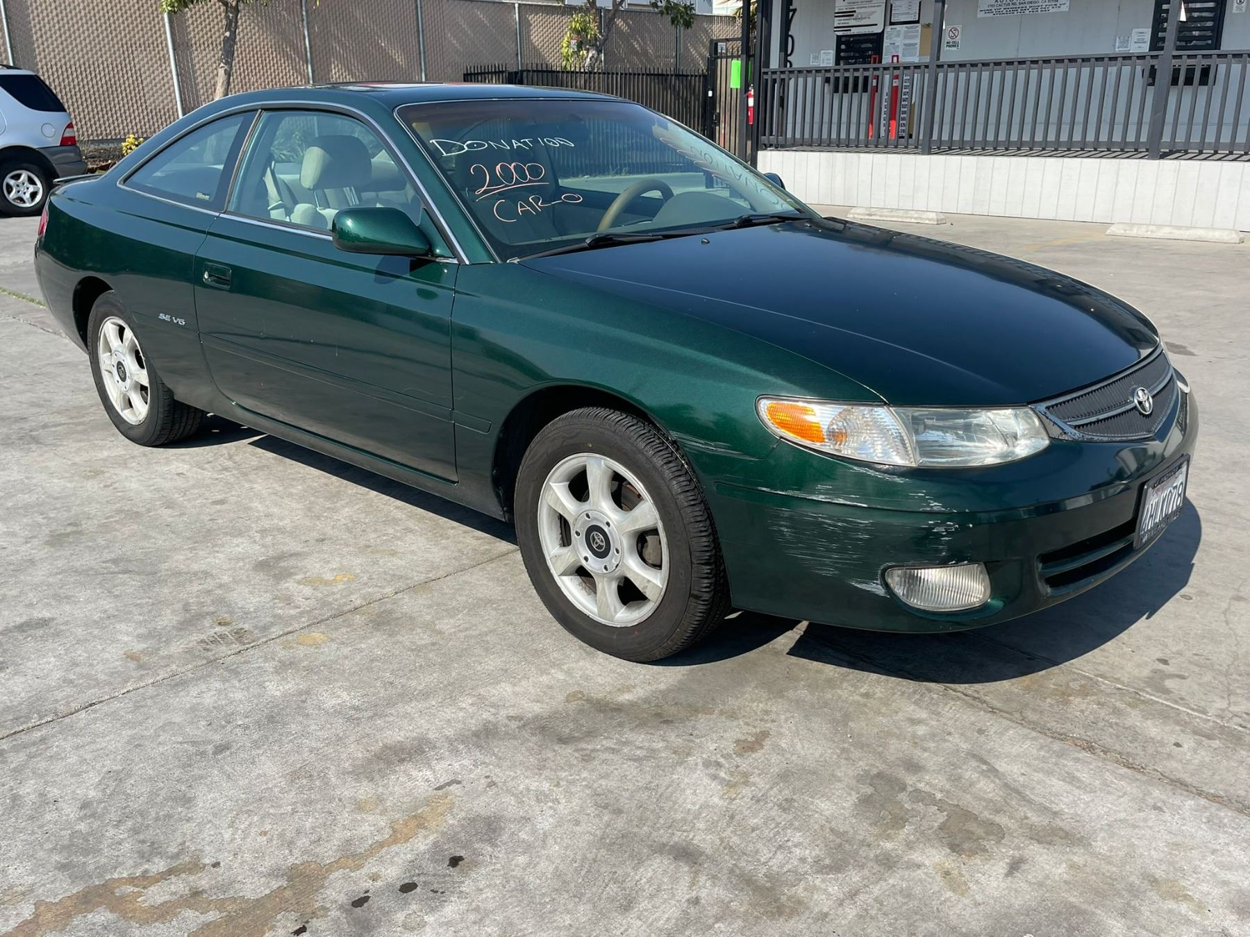 MAKE: TOYT || MODEL: SOLARA || YEAR: 2000 || TITLE: T-DONATION || VIN: 2T1CF22P4YC264499 || MILES: 238198 || ENGINE: 6 CYL / 3.0 L || COLOR: GREEN || KEYS: Yes