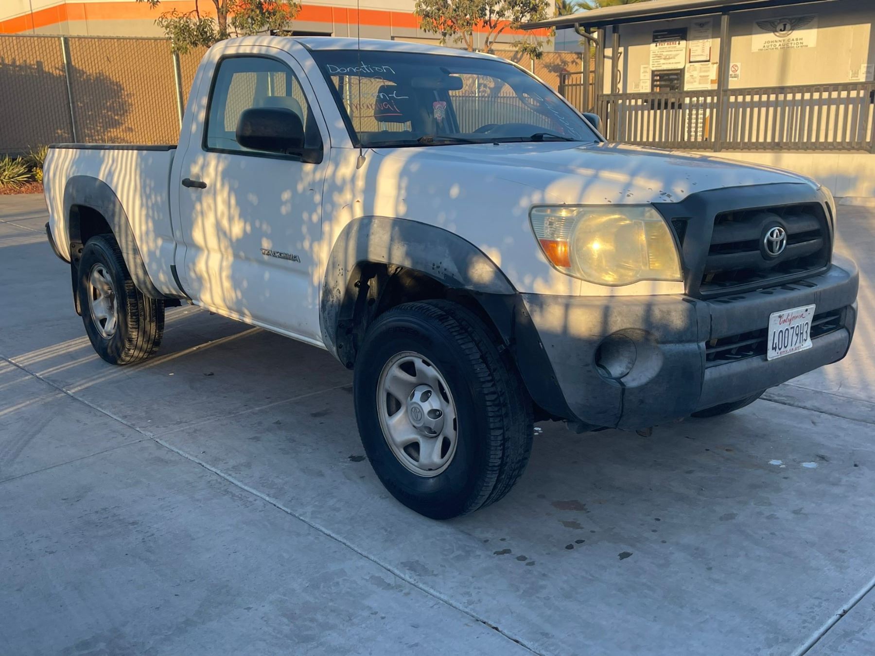 MAKE: TOYT || MODEL: TACOMA || YEAR: 2007 || TITLE: SALV T/DONATION || VIN: 5TENX62N47Z337326 || MILES: 215939 || ENGINE: 4 CYL / 2.7L || COLOR: WHITE || KEYS: Yes || *Green Light