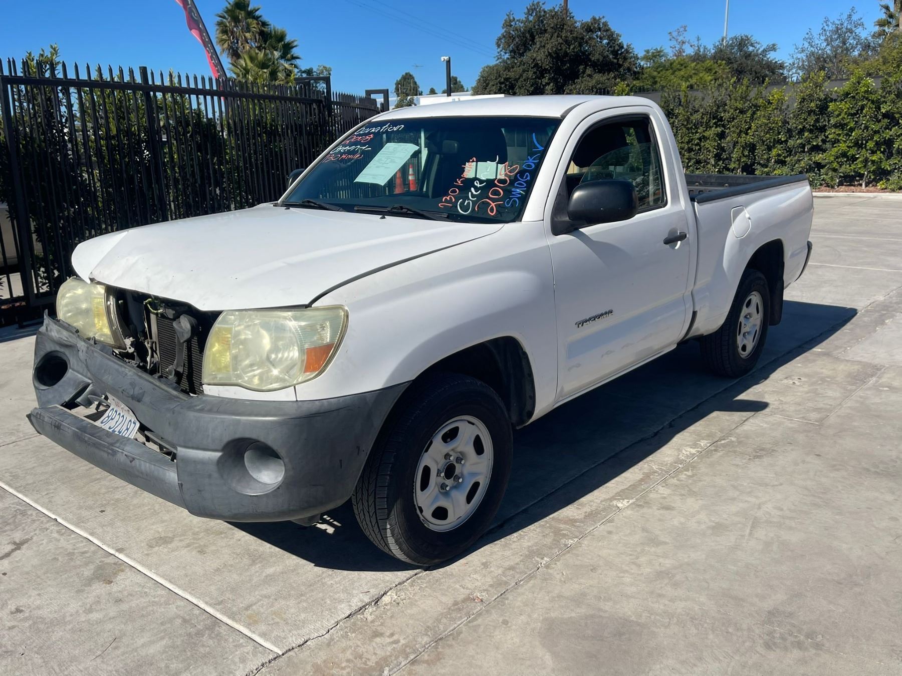 MAKE: TOYT || MODEL: TACOMA || YEAR: 2008 || TITLE: T-DON - SMOG || VIN: 5TENX22N78Z488333 || MILES: 135069 || ENGINE: 4 CYL / 2.7L || COLOR: WHITE || KEYS: Yes || *Green Light