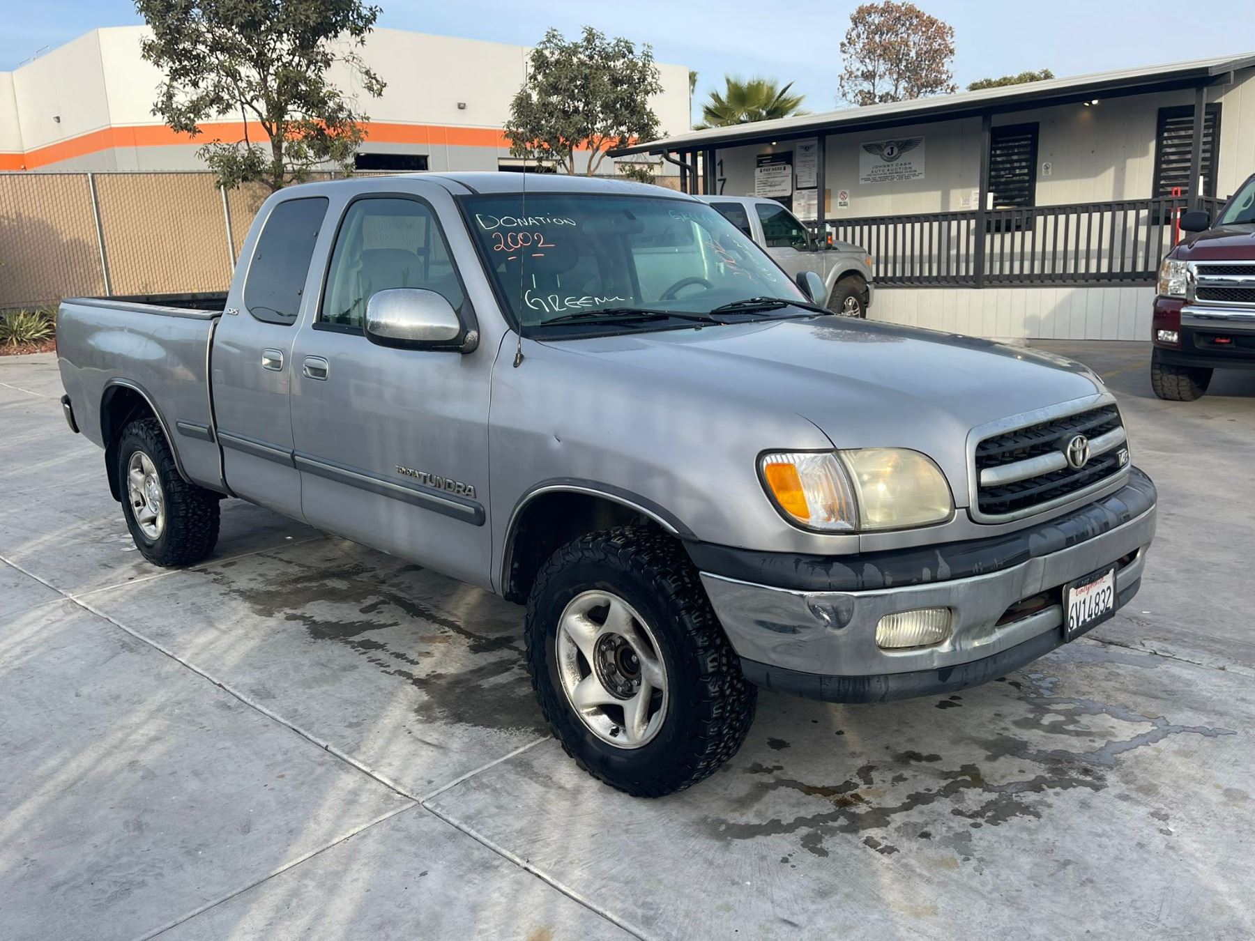 MAKE: TOYT || MODEL: TUNDRA || YEAR: 2002 || TITLE: T-DONATION || VIN: 5TBRT34132S260842 || MILES: 313130 || ENGINE: 8CYL/4.7L || COLOR: SILVER || KEYS: Yes || *Green Light