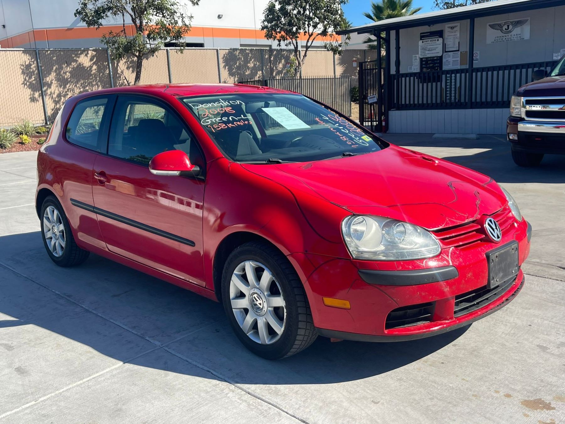 MAKE: VOLK || MODEL: RABBITT || YEAR: 2008 || TITLE: O/S-T DON - SMOG || VIN: WVWAB71K48W247246 || MILES: 158004 || ENGINE: 5 CYL / 2.5L || COLOR: RED || KEYS: Yes || *Green Light